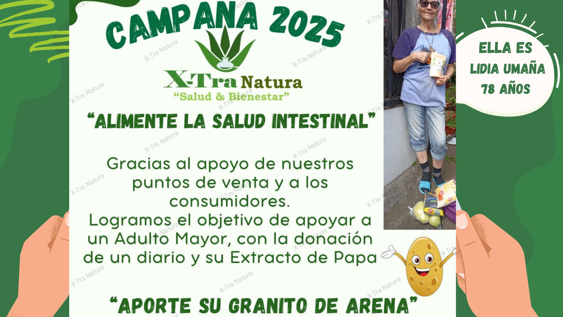 Nuestra empresa X-TRA NATURA; Desde el 2024, está patrocinando Adultos Mayores; Y les hemos estado entregando mensualmente, un Extracto de Papa, del paquete grande (30 sobres)